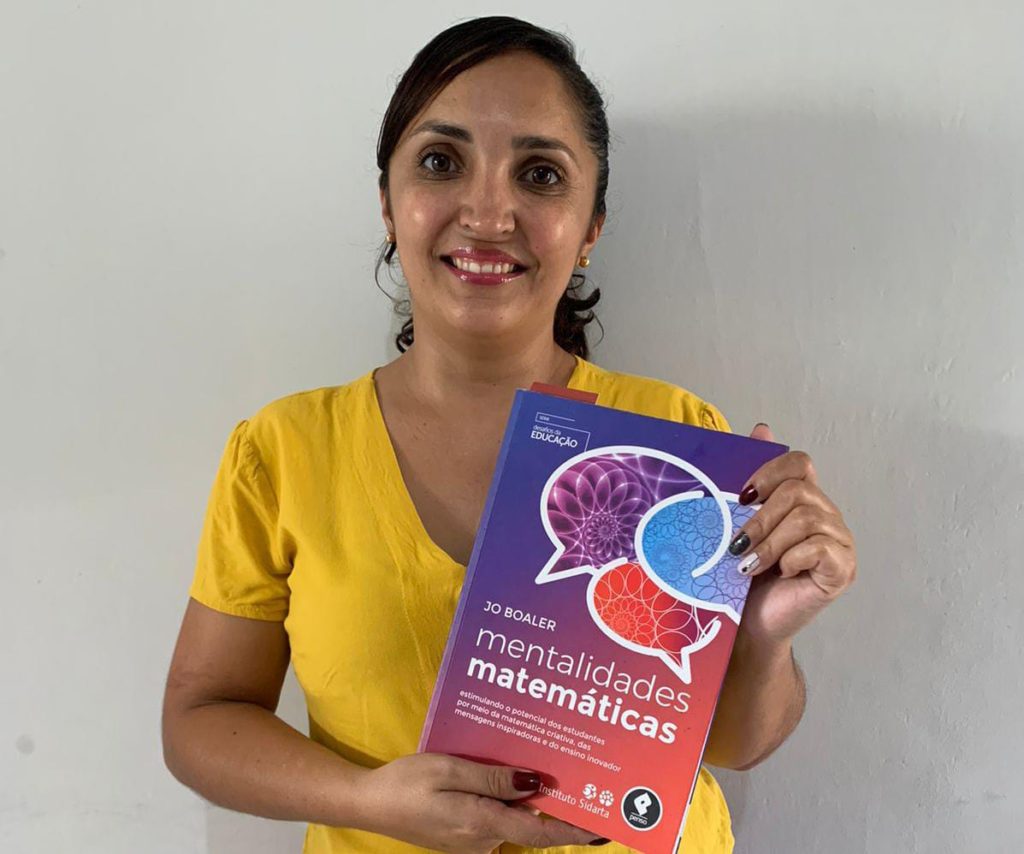 Como professora de matemática, uns dos meus principais desafios é contornar as deficiências de aprendizagem com as quais os estudantes chegam. A pandemia agravou ainda mais essa defasagem. Frequentemente, preciso adaptar meu planejamento por precisar de uma quantidade maior de aulas do que as previstas para determinado conteúdo. Conhecer o Mentalidades Matemáticas foi fundamental porque aprendi sobre a importância dos erros. Por meio deles, consigo saber quais as fragilidades em que preciso prestar mais atenção.