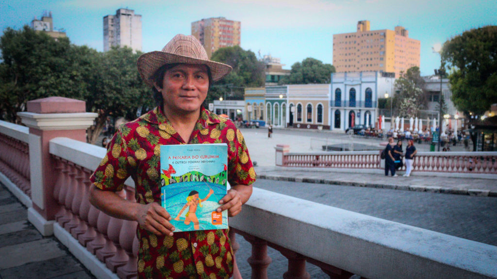 Tiago tem 14 obras publicadas. No início, escrevia para adultos; depois, recebeu um chamado irrecusável. O escritor Daniel Munduruku o incentivou a escrever para crianças e adolescentes e que trouxesse histórias da sua vida e de seu povo, os sateré-maué. Ele atendeu. Foi assim que nasceu A pescaria do curumim e outros poemas indígenas, com ilustrações de Taisa Borges (Panda Books, 2015), selecionado no edital do programa Leia com uma criança, do Itaú Social. Neste ano, pela primeira vez, os livros são distribuídos exclusivamente para secretarias de educação e organizações da sociedade civil, com o objetivo de fazer essa leitura chegar às pessoas que mais precisam dela.