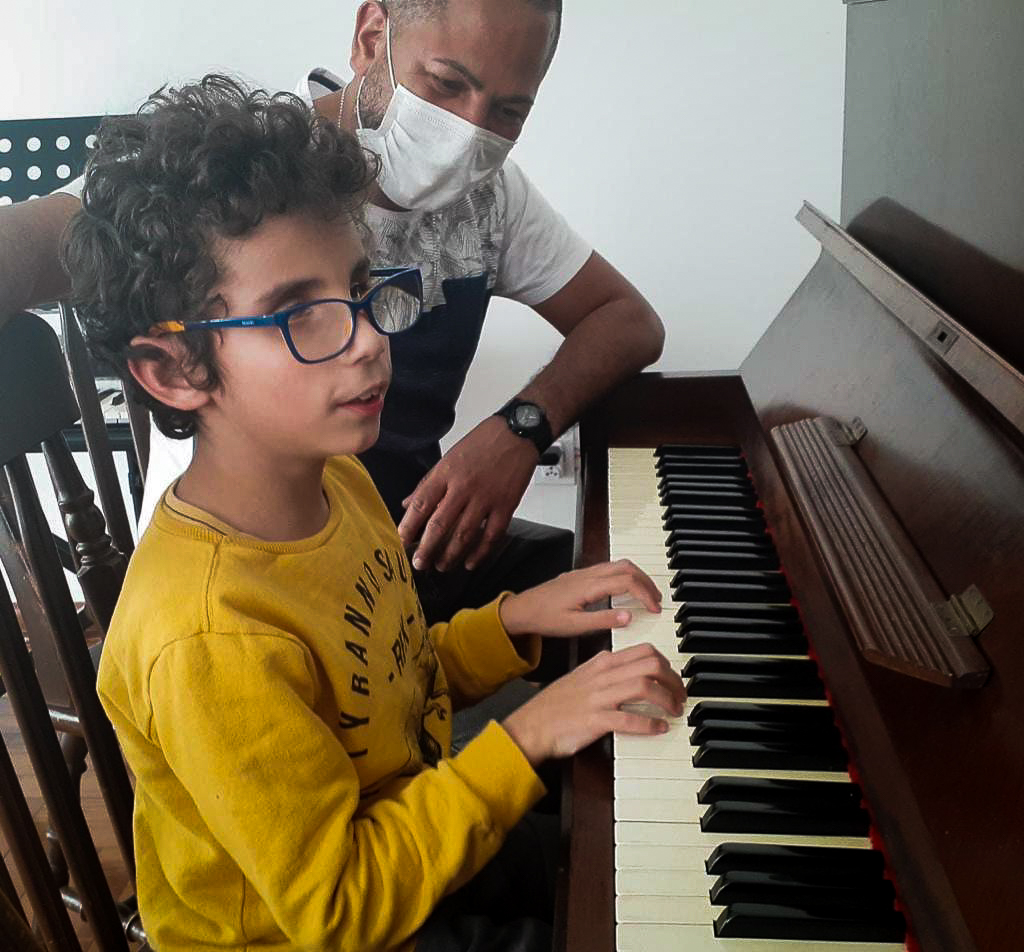 Katia Capinan Rubens é mãe de Davi, de oito anos. Ela conta que seu filho é o único deficiente visual total na rede municipal de sua cidade, Mogi das Cruzes (SP). Ele ainda não tem aulas de artes na escola e, por isso, Katia Capinan foi procurar outras possibilidades. “O Davi ganhou uma bolsa de estudo em uma escola regular de música. Desde que as aulas começaram, antes da pandemia, ele se desenvolveu muito.” Ela conta que o professor precisou ir atrás de partituras em braile e outros métodos de ensino, mas desde o começo as aulas surtiram muito efeito.