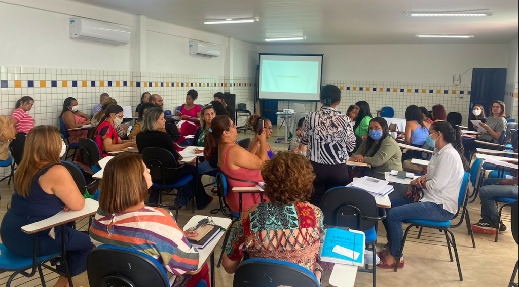Existem três formatos de encontros: há momentos em que os pontos focais se reúnem para dinâmicas formativas. Posteriormente, os pontos focais são responsáveis por multiplicar aquilo que foi apresentado. “Após as atividades formativas, são realizadas ações de socialização com as equipes da secretaria e as escolas para garantir a implementação”, diz a educadora. “Não fica apenas na teoria, começamos a viver aquilo”, complementa Cledja.