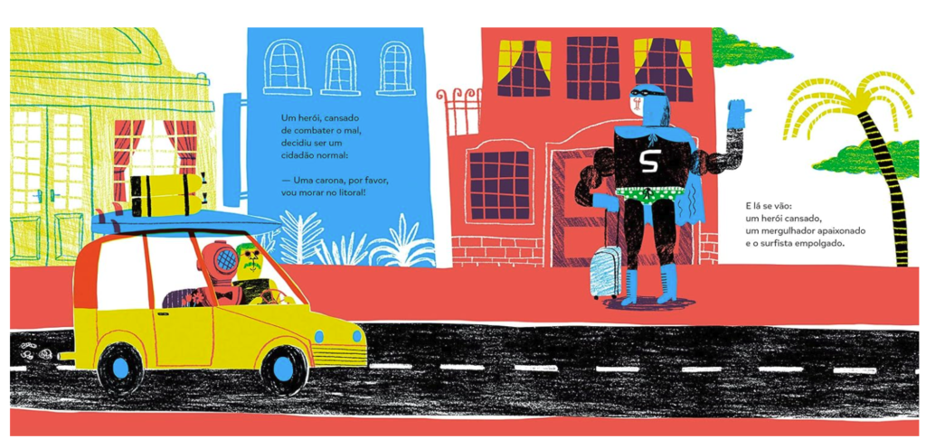 GAcho que o Carona foi uma experiência de pôr no papel coisas incubadas na minha cabeça havia muito tempo. São ilustrações que fui fazendo e que planejava poder usar em algum momento. Todas essas misturas de textos e imagens acabaram sendo canalizadas e filtradas para essa história. Para mim, era tudo novo, a primeira vez. Sem querer parecer arrogante, quando ouço outras pessoas dizendo que o livro trouxe um frescor, tenho a sensação de que ele representa uma novidade de estilo de ilustração e do tipo de literatura que estava sendo feita no Brasil. Confesso que foi muito sem querer. Notei que não são poucos os autores que surgem dessa mesma maneira. Carona acabou ganhando um Jabuti, o maior prêmio brasileiro, na categoria ilustração, e isso me abriu muitas portas. Eu já era conhecido nas editoras, pelo meu trabalho como ilustrador. Entretanto, eu tinha dificuldade de me tornar conhecido do público. Principalmente porque eu não moro no eixo Rio-São Paulo. O Carona espalhou o meu nome para todo o Brasil e para outros países. É o meu livro com o maior número de traduções. Já são 12 idiomas. Para um primeiro livro, é uma conquista incrível, que me trouxe muitas alegrias.