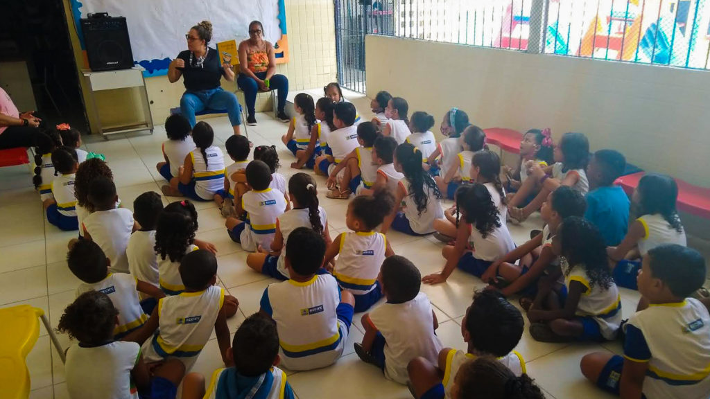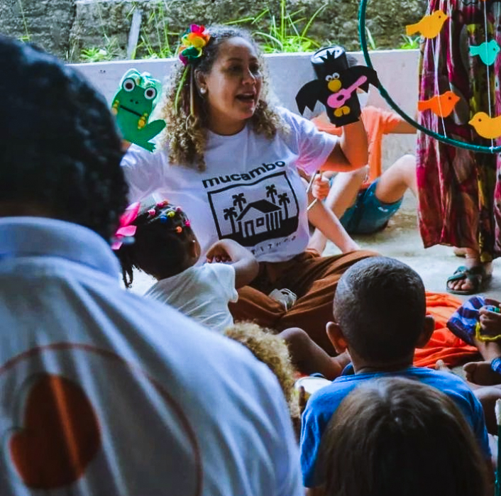 Além de professora sou gestora do Instituto Mucambo, cuja sede fica no quintal de minha casa. A organização surgiu para formalizar um projeto que outros educadores e eu já realizávamos, chamado Leituras Brincantes. Com crianças em situação de vulnerabilidade, realizamos atividades como mediação de leitura, contação de histórias e distribuição de livros, além de arrecadação e doação de alimentos. No mesmo intuito de envolver as famílias, fazemos periodicamente rodas de leitura com as mães.